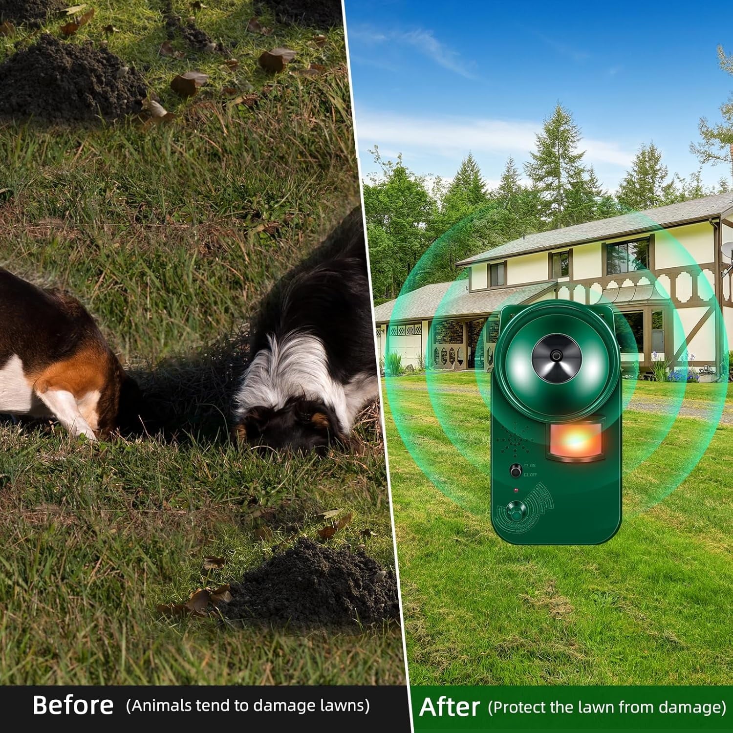 Easy To Adjust: The bird deterrent devices offers multiple settings that can be easily adjusted to meet your needs. It comes with a set of control switches to customize the settings freely. In addition, the outdoor bird repeller has a sensitivity dial that controls the frequency of the ultrasonic waves. By simply adjusting the dial, you can adjust the frequency tone from high to low, and adjusted to the maximum it can be a bird repellent as well as a big game repeller