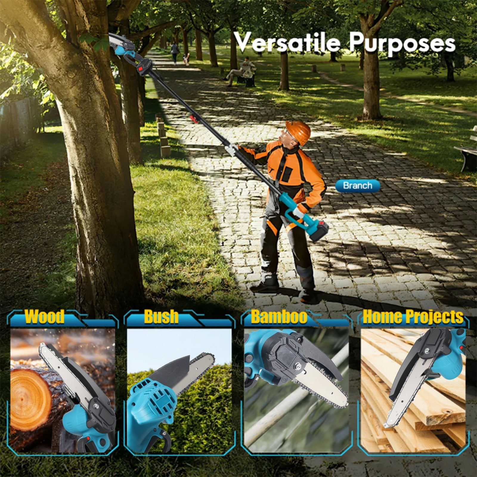 2-in-1 Functionality: The KingFurt cordless pole saw combines a powerful chainsaw with an extendable pole, allowing you to prune branches and reshape trees effortlessly while avoiding ladder use.