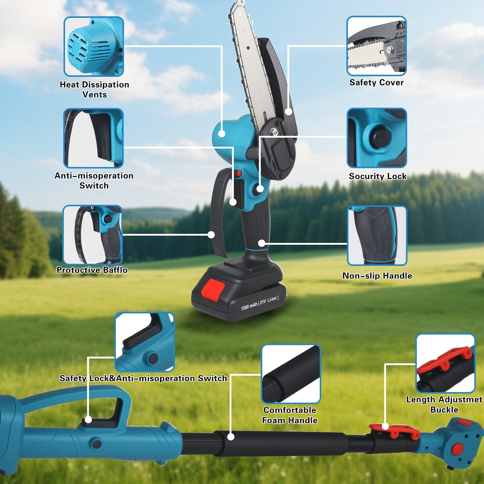 Durable Motor Design: Built with a robust pure copper motor, this saw provides exceptional torque and reliability, ensuring fast, smooth cuts through both branches and hardwoods for efficient operation every time.