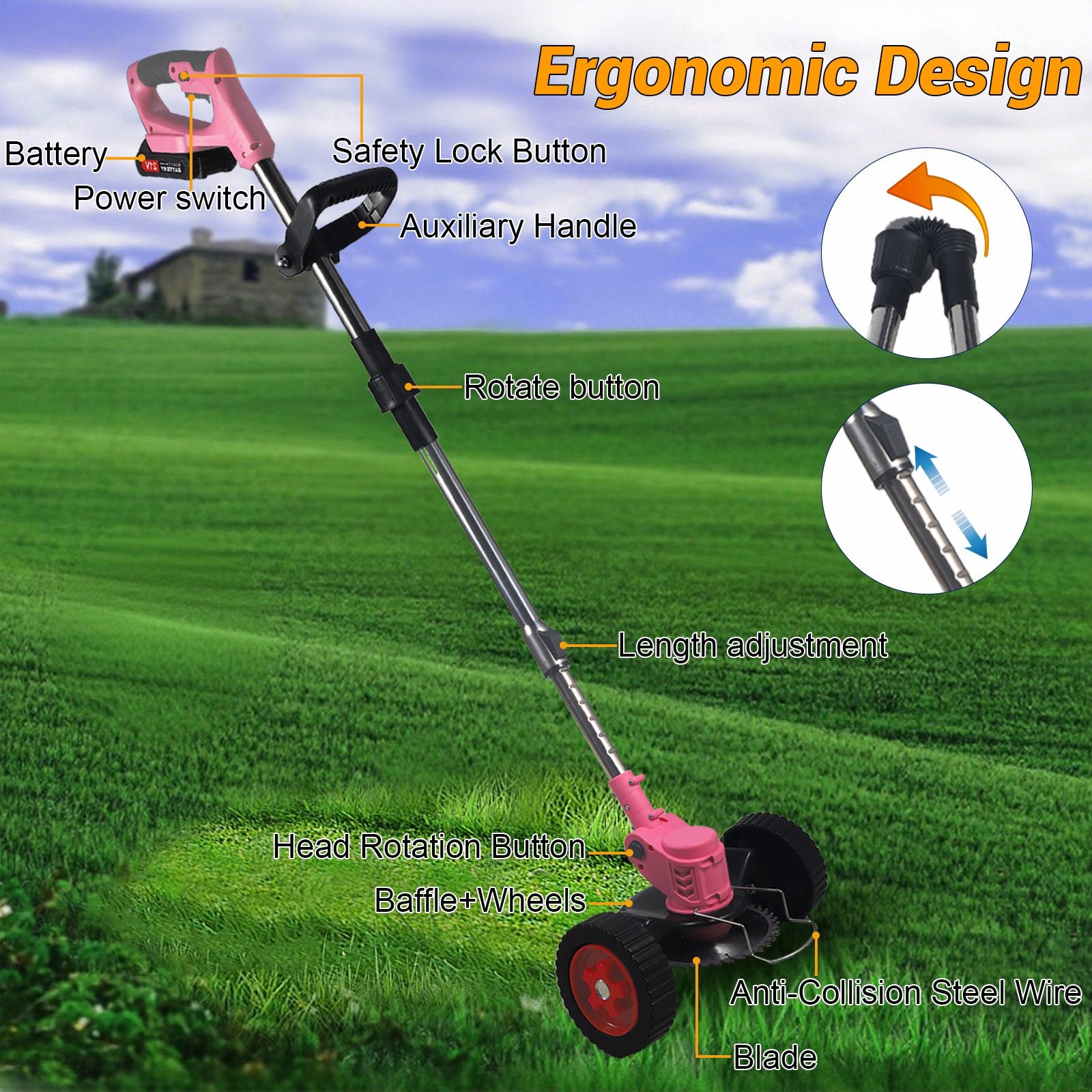 - Weed Eater with Wheels:The cutting diameter can reach 150mm, which is more efficient, and the double front wheel assists, making it more comfortable to work for a long time.