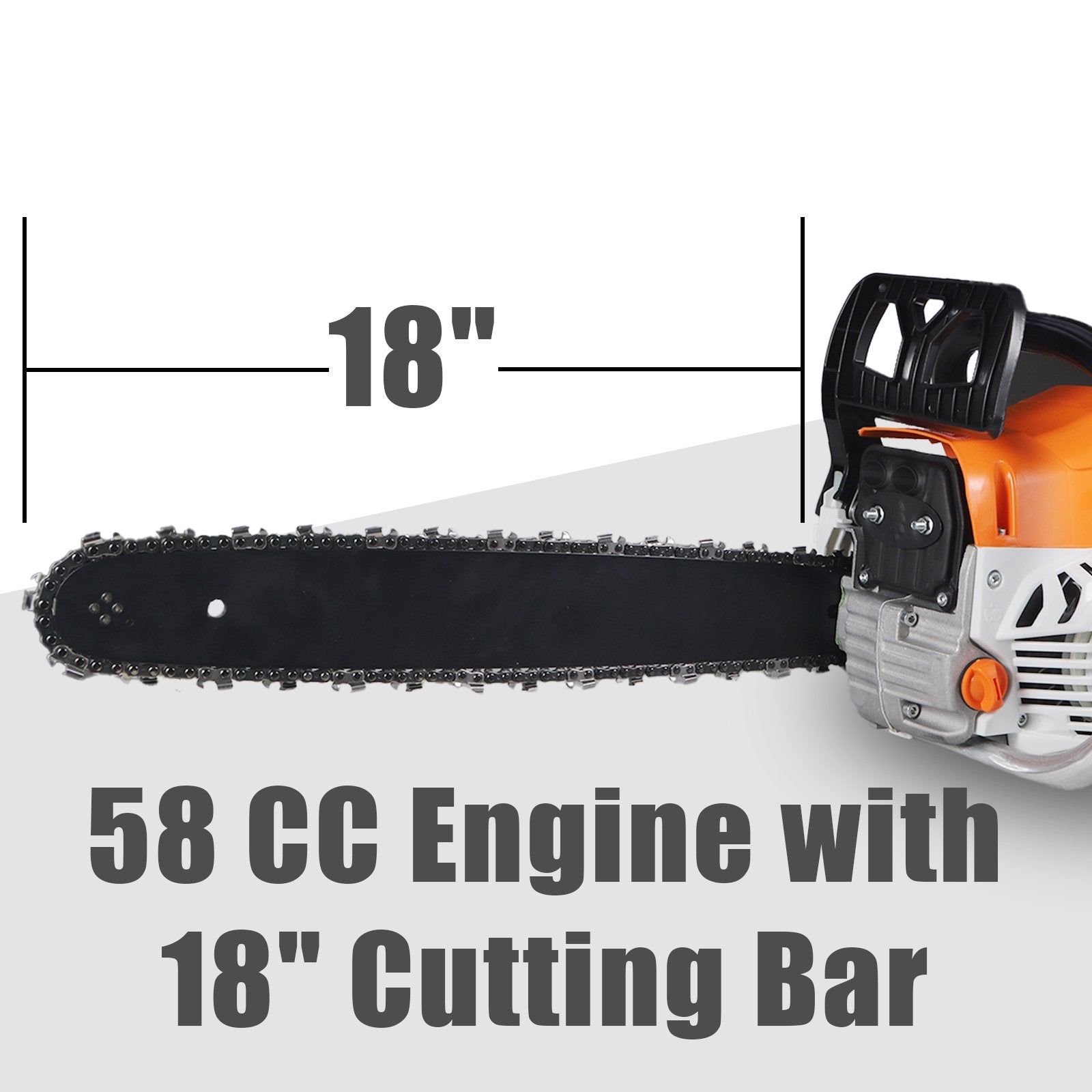 KingFurt 58CC Gas Chainsaw, 18 Inch Power Chainsaw, 2-Cycle Handed Petrol Chainsaws for Tree Cutting, Gardens and Farms