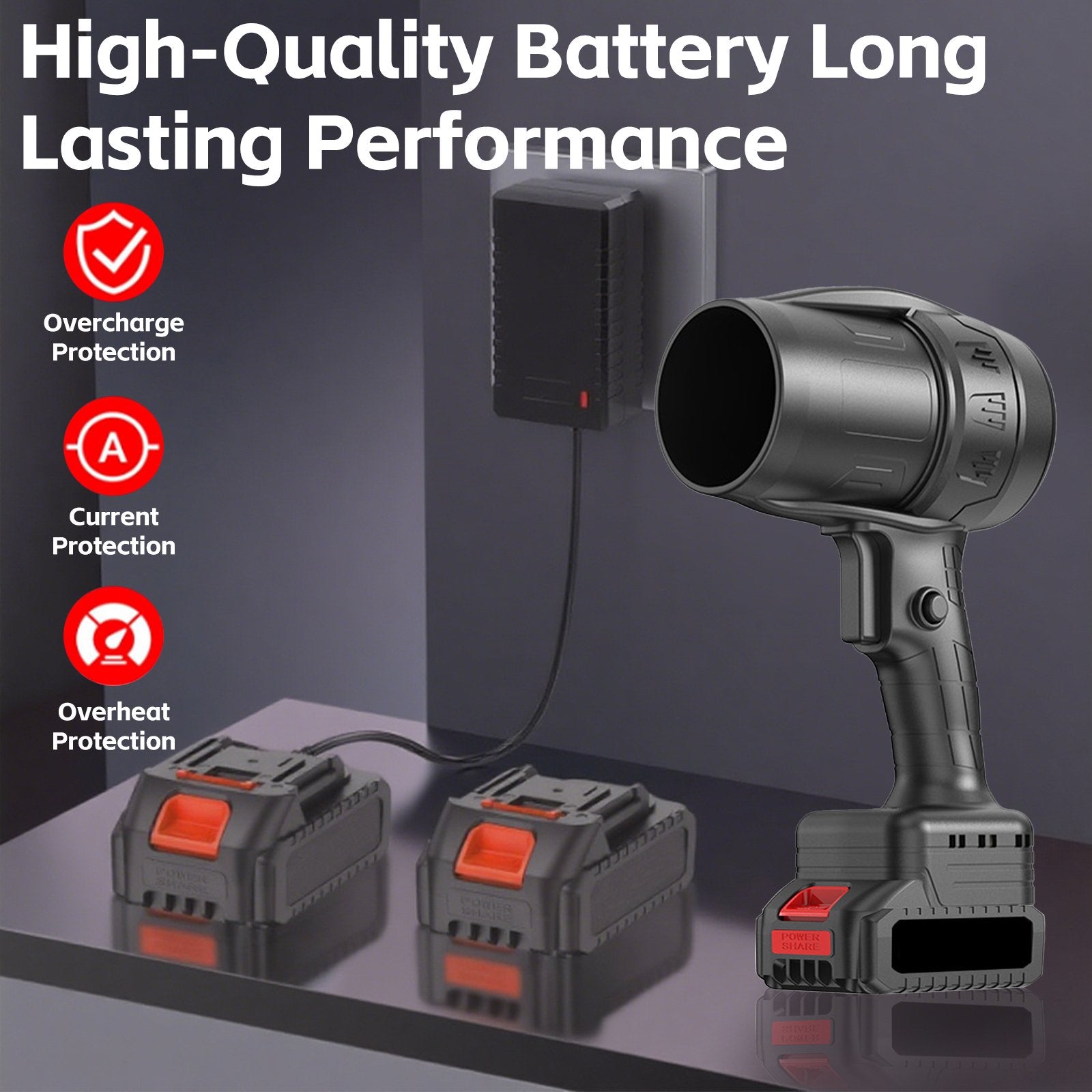 Extended Usage: Equipped with two high-capacity 21V lithium batteries, the KingFurt Leaf Blower ensures you can work outdoors without worrying about running out of power even on larger projects.