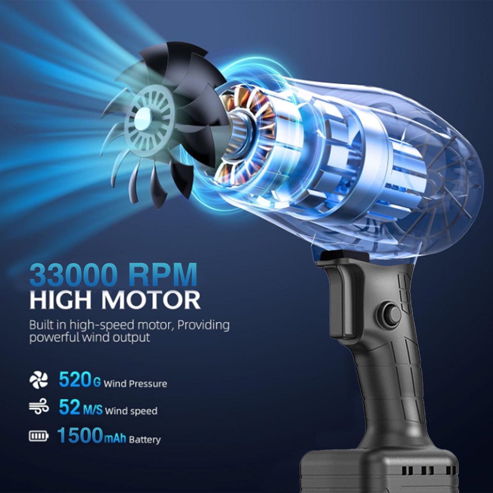 Designed for anyone who values convenience and efficiency, this handheld leaf blower delivers unbeatable performance, boasting an impressive speed of 33,000 RPM.