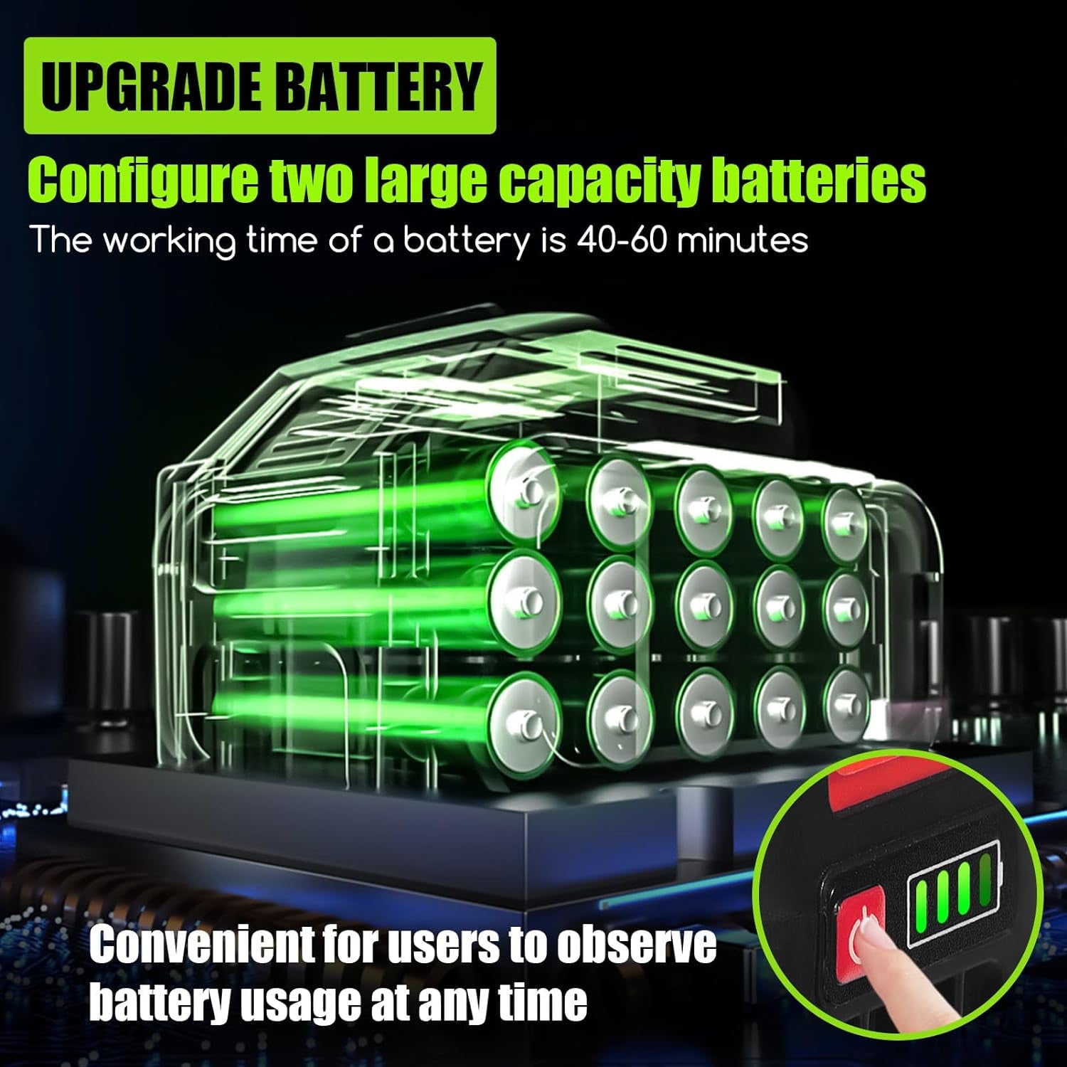 Featuring 2 large capacity batteries, our weed whacker ensures that you'll never run out of power during your trimming sessions. Say goodbye to the frustration of constantly recharging or swapping out batteries. With our dual battery system, you can work for longer periods without any interruptions, making your gardening experience more enjoyable.