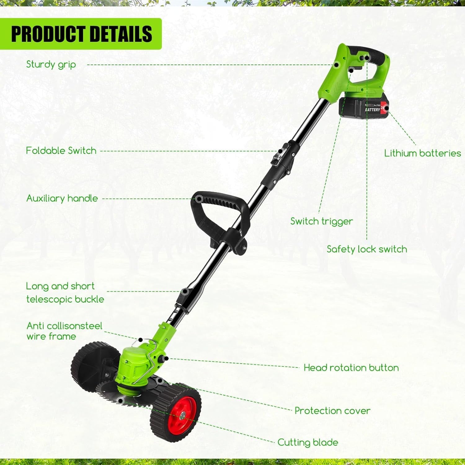 - Powerful Performance: Equipped with a strong DC motor, this weed wacker operates quietly while providing robust power without overheating during extended use