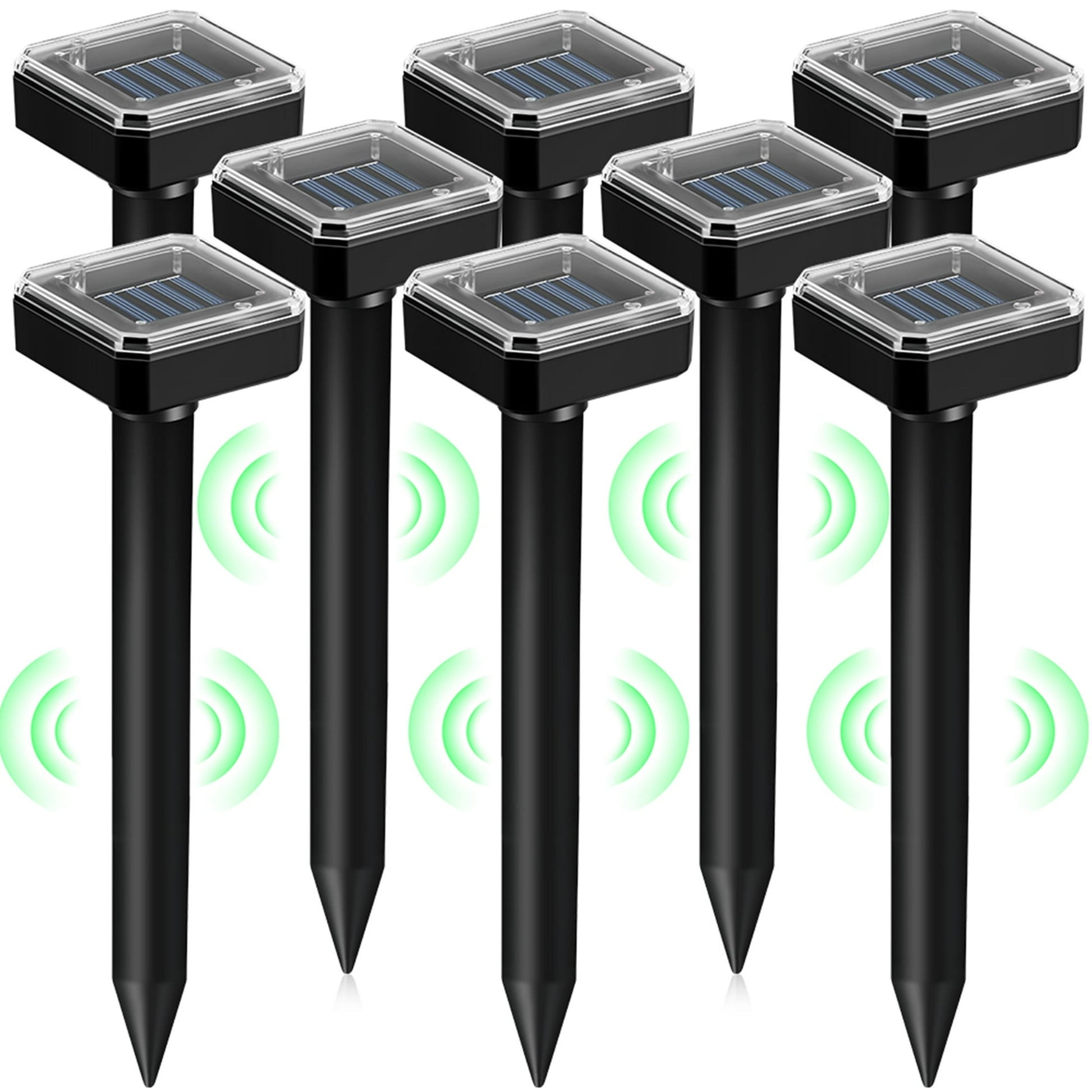 Mole Repellent Solar Powered,8 Pack Vole Repellent Outdoor Ultrasonic Powered Groundhog Deterrent Snakes Pest Rodent Sonic Vibration Stake for Lawn Garden